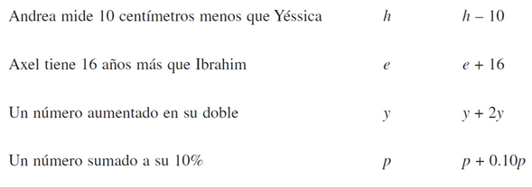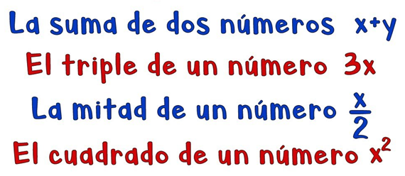 En la siguiente imagen podemos algunos otros ejemplos de lenguaje algebraico.
